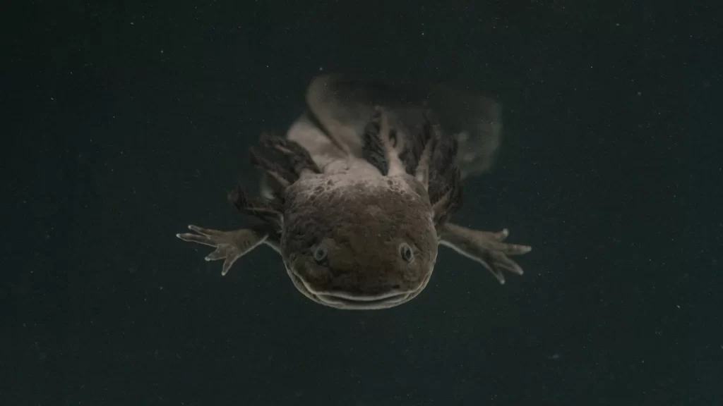 Es el ajolote, una salamandra mexicana que decidió quedarse niño para siempre, manteniendo sus branquias de bebé toda la vida.